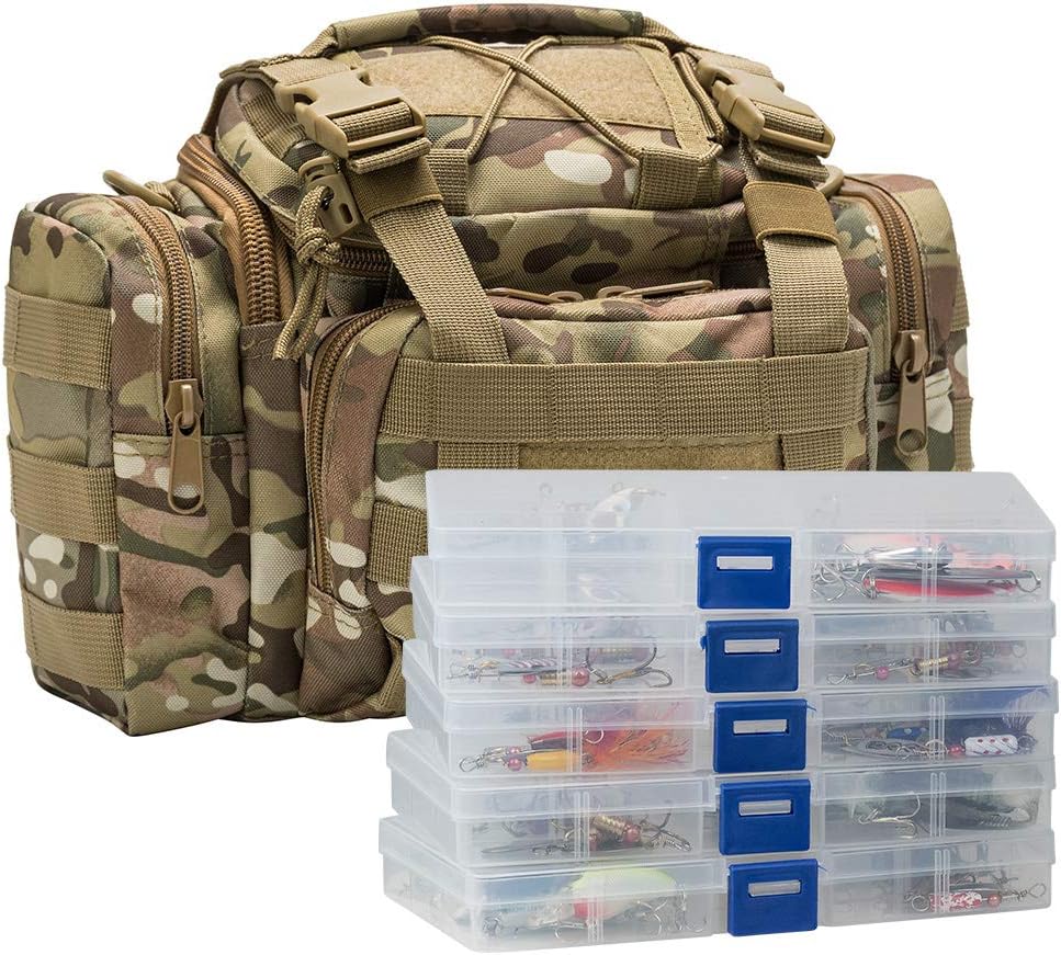 - STRONG BUILT TACKLE BAG. This fishing tackle bag is made of high quality water-resistant 900D OXFORD FABRICS, which is exactly the reason we call it HEAVY DUTY. With extra firm stitched and zipper lock, it will withstand long-term using in different condition. Also features excellent DUST and STAIN RESISTANCE.